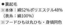 表糸は綿100%で毛玉ができにくく、裏起毛で暖かいカンガルーポケット仕様!